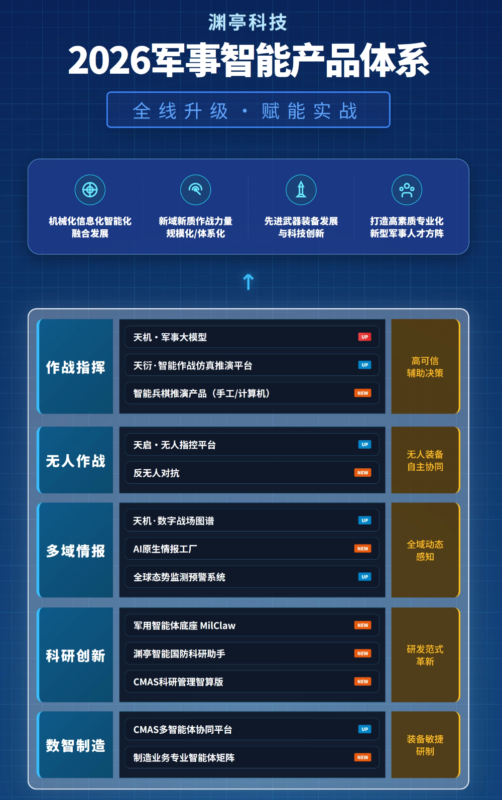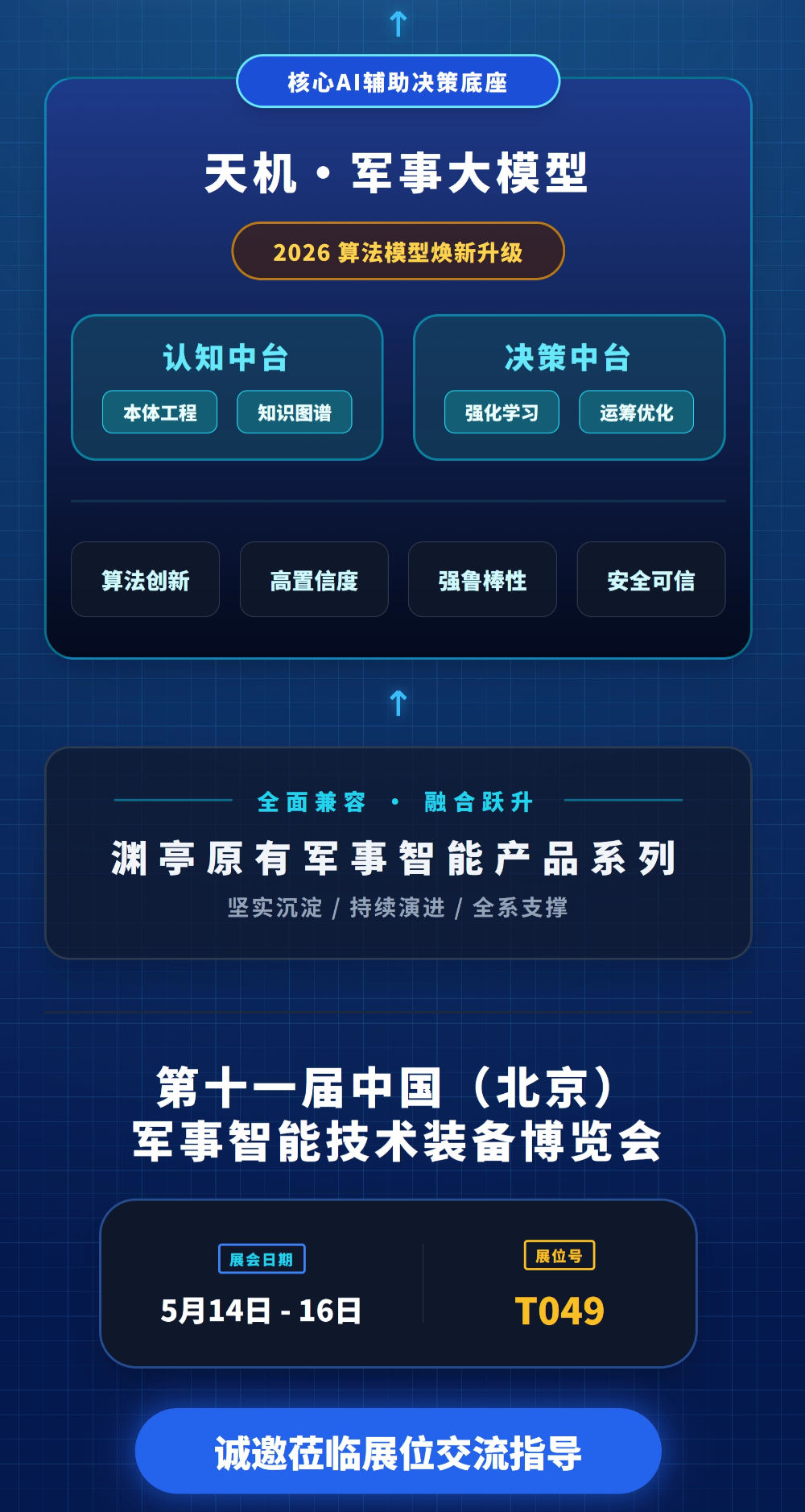 5月14日至16日,渊亭科技2026全新军事智能产品矩阵将集中亮相第十一届中国(北京)军事智能技术装备博览会。